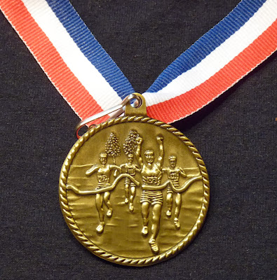 | 2013 Fox Valley Fall Final 20 Finisher Medal on left, trophy for Overall Masters Winner on right St. Charles, IL ... September 22, 2013 |